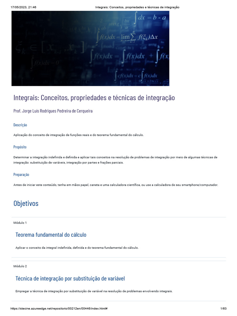 17/05/2023, 21:46 Integrais: Conceitos, propriedades e técnicas de integração