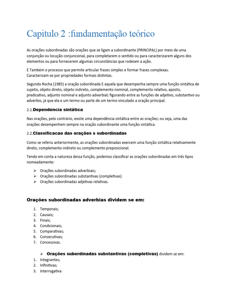 Segundo Rocha (1985) a oração subordinada E aquela que desempenha sempre uma função sintática de