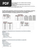 1. Elabore uma consulta SQL que exiba os nomes e sobrenomes dos funcioná rios,