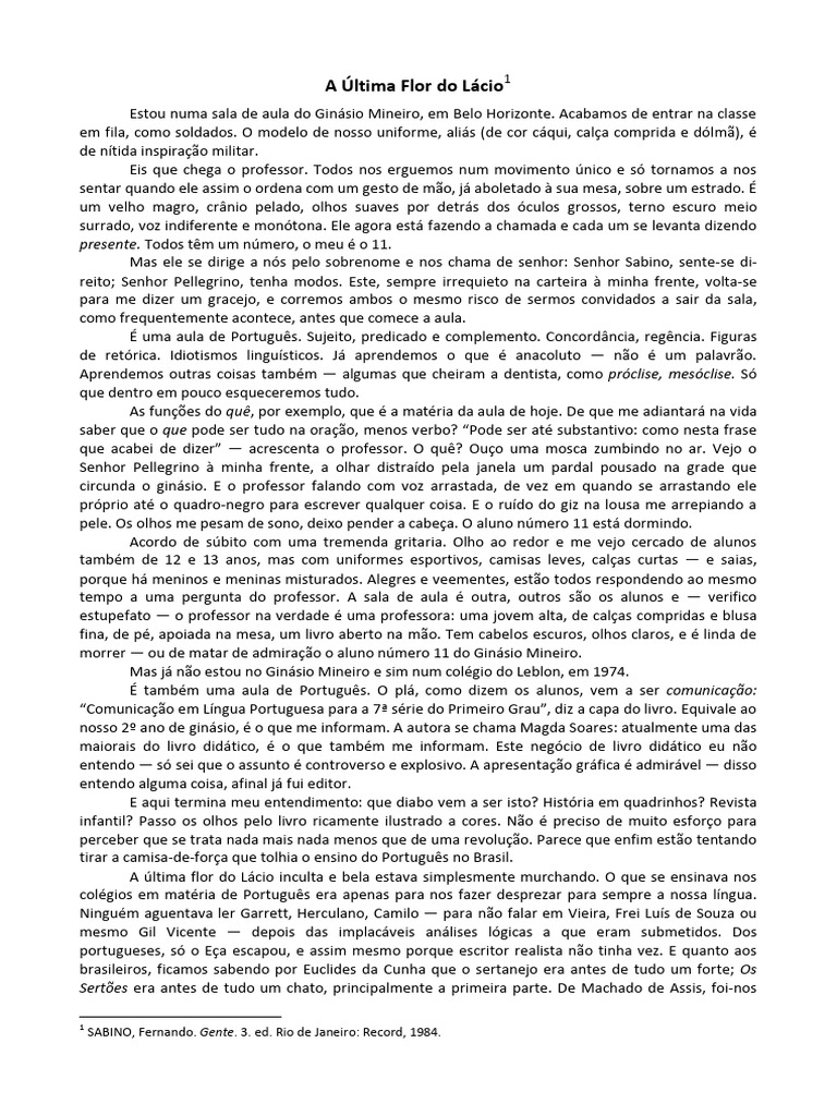 A última flor do Lácio inculta e bela estava simplesmente murchando. O que se ensinava nos