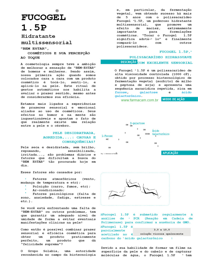 de homens e mulheres. Sendo assim, O Fucogel ® 1.5P é um polissacarídeo de