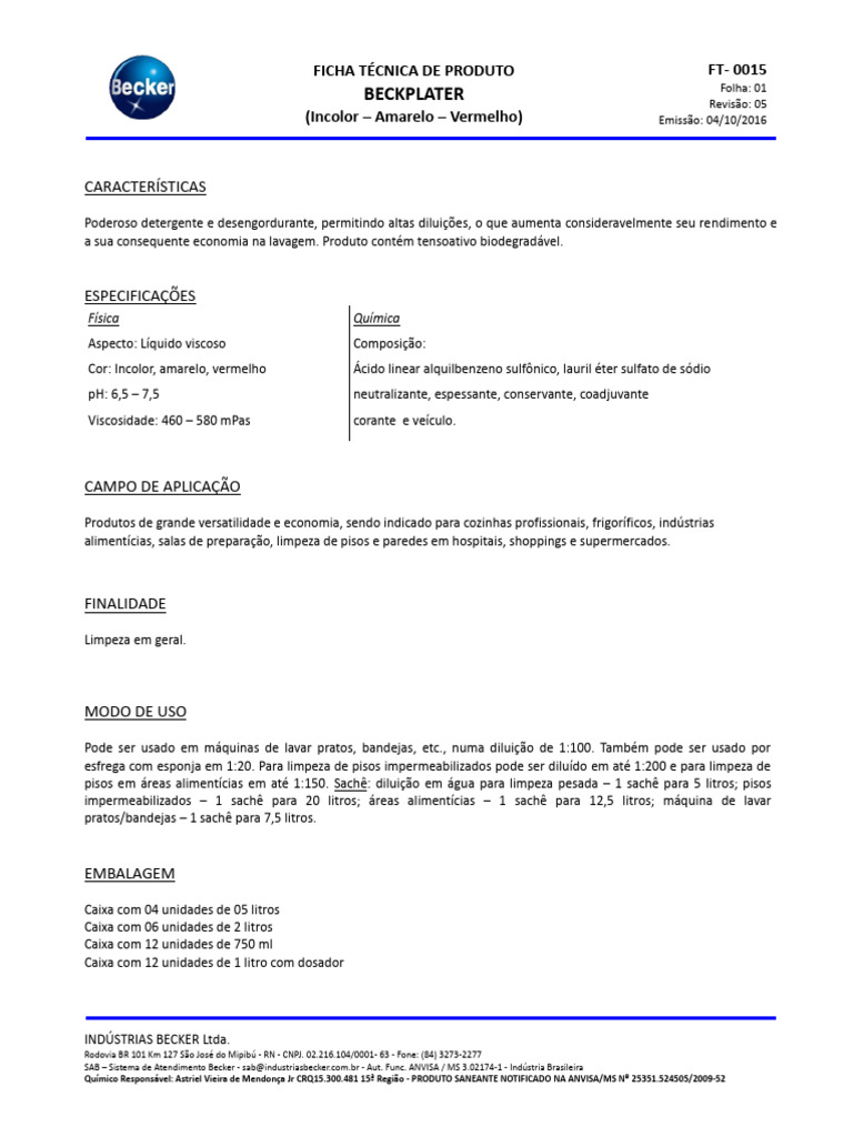 FICHA TÉCNICA DE PRODUTO FT- 0015