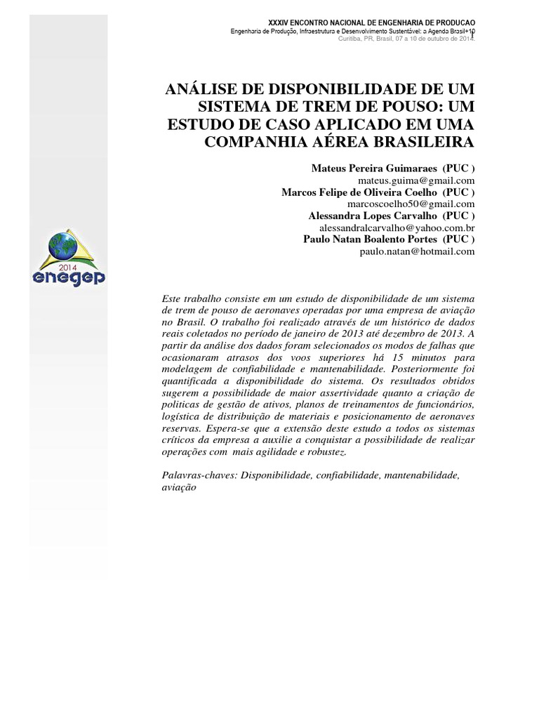 Palavras-chaves: Disponibilidade, confiabilidade, mantenabilidade,