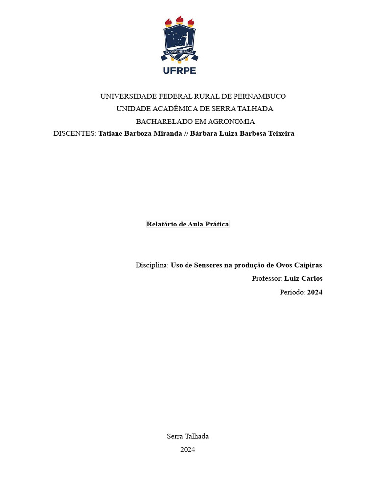 Disciplina: Uso de Sensores na produção de Ovos Caipiras