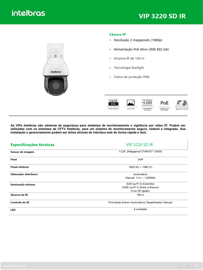 Especificações técnicas VIP 3220 SD IR