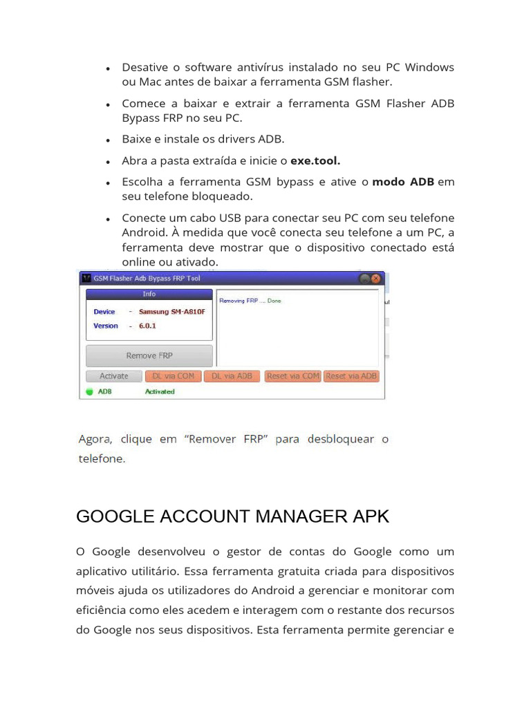seu dispositivo for o Android 9, o Google Account Manager 9 é o que