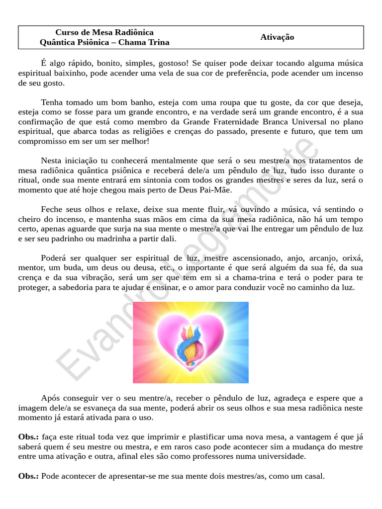 ritual, onde sua mente entrará em sintonia com todos os grandes mestres e seres da luz, será o
