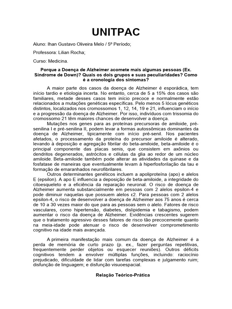 Porque a Doença de Alzheimer acomete mais algumas pessoas (Ex.