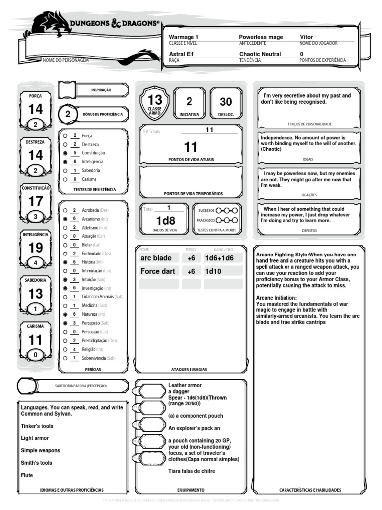 NOME DO PERSONAGEM RAÇA TENDÊNCIA PONTOS DE EXPERIÊNCIA