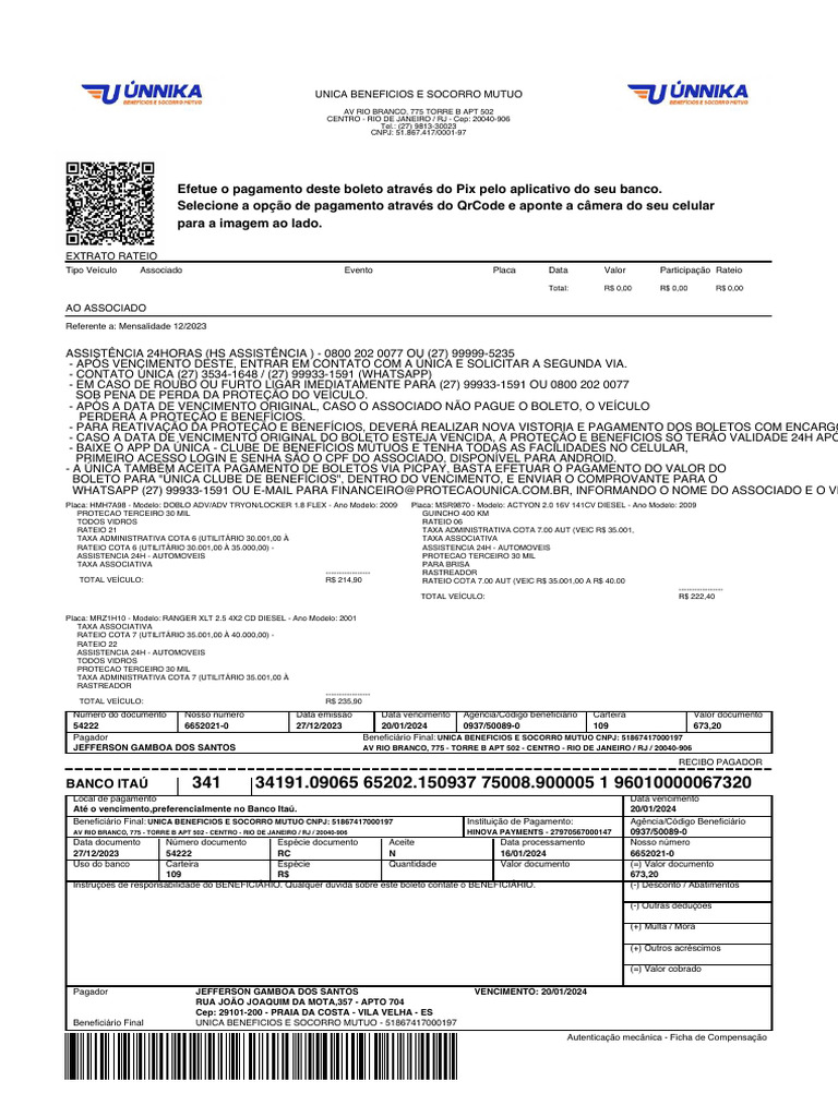 BOLETO PARA "ÚNICA CLUBE DE BENEFÍCIOS", DENTRO DO VENCIMENTO, E ENVIAR O COMPROVANTE PARA O