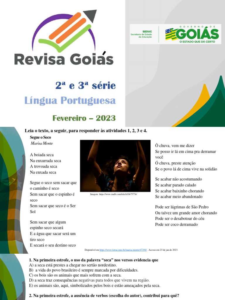1. Na primeira estrofe, o uso da palavra “seca” nos versos evidencia que