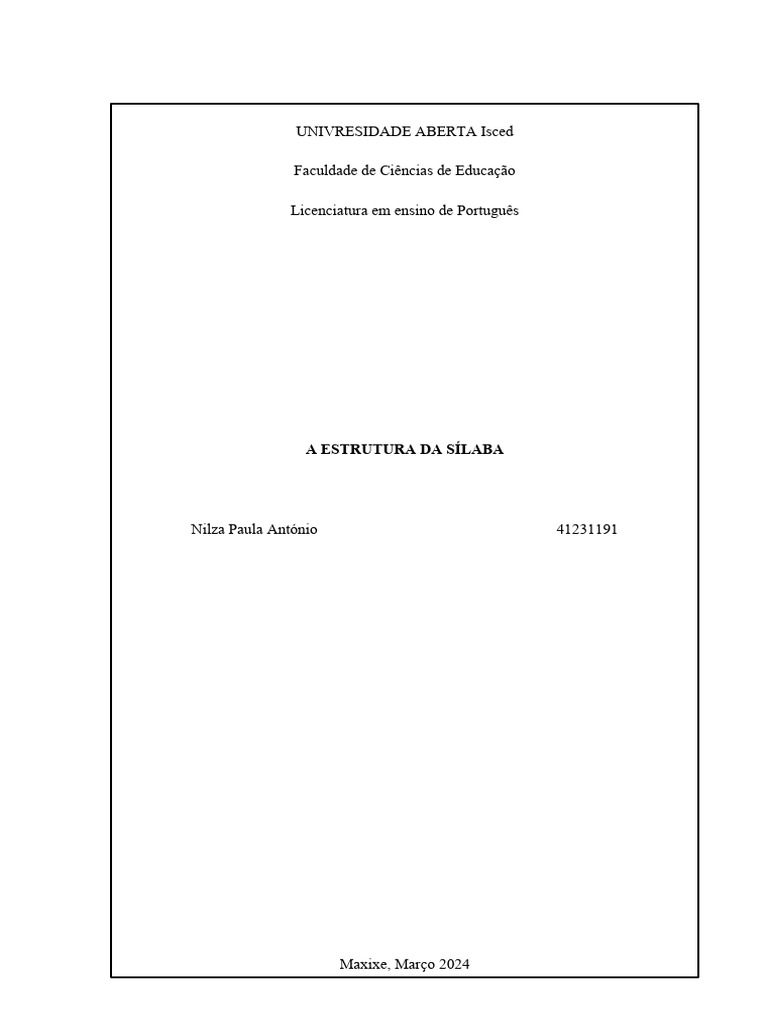 O trabalho em alusão fala sobre a estrutura da sílaba, concluiu-se que, a sílaba é uma unidade
