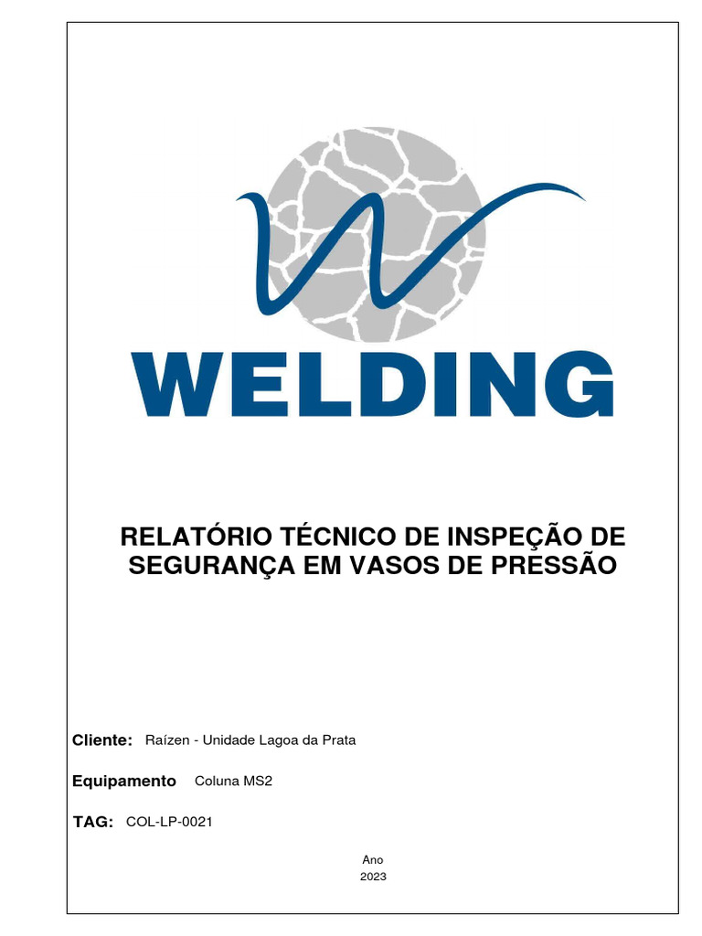 Os resultados da inspeção encontram-se no relatório de inspeção elaborado pela Welding Inspeções,