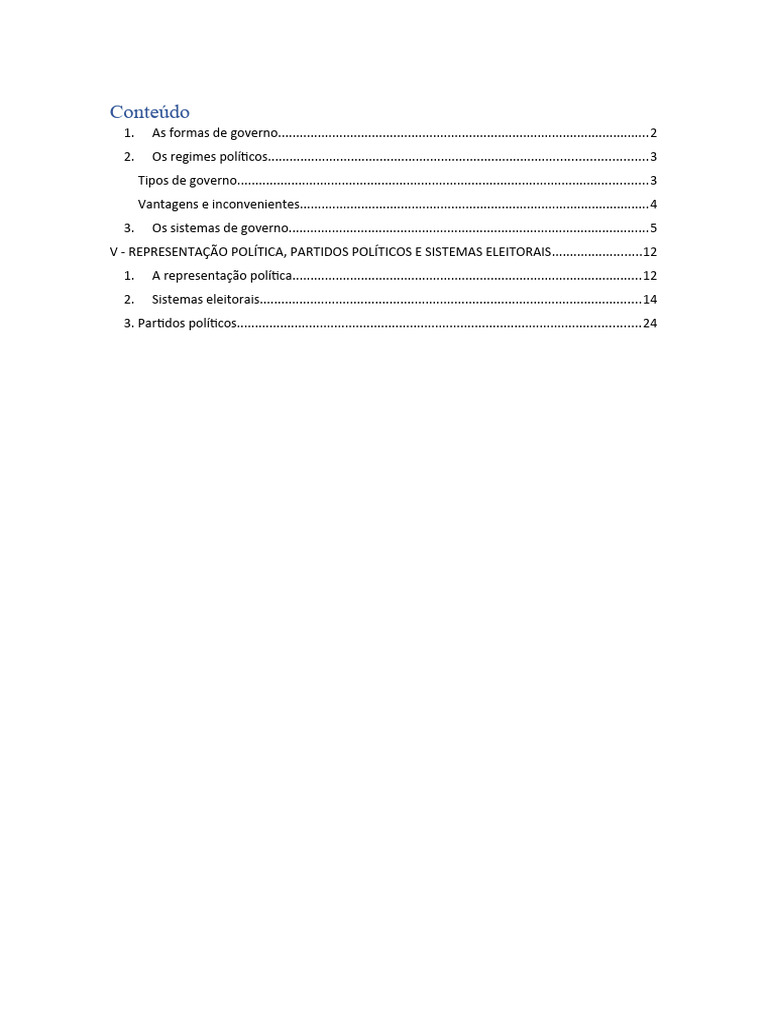 V - REPRESENTAÇÃO POLÍTICA, PARTIDOS POLÍTICOS E SISTEMAS ELEITORAIS.........................12