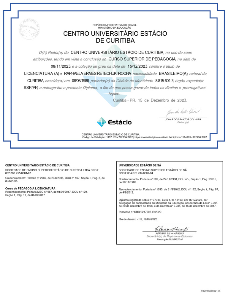 LICENCIATURA (A) a RAPHAELA ERMES RETECHUKI ROCHA, nacionalidade BRASILEIRO(A), natural de