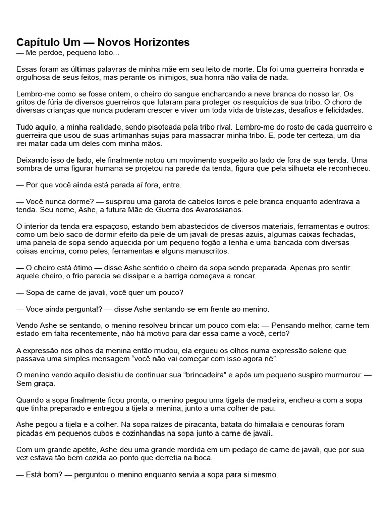 mais alto escalão de sua tribo, e a outra era um menino órfão de pai que foi criado por lobos selvagens.