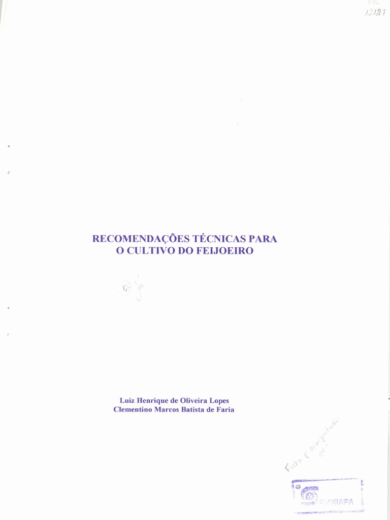 FEIJÃO,!., Goiânia, 1982. Anais ... Goiânia, EMBRAPA-CNPAF, 1982. p.317.