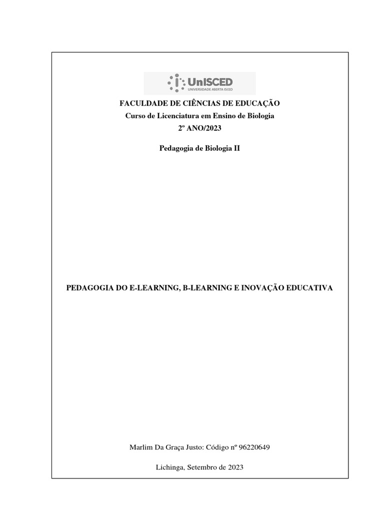 PEDAGOGIA DO E-LEARNING, B-LEARNING E INOVAÇÃO EDUCATIVA