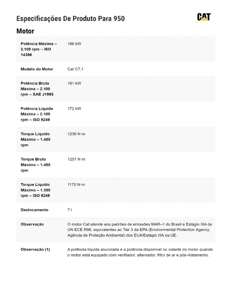 Os equipamentos padrao e opcionais podem variar. Consulte o revendedor Cat para obter detalhes.