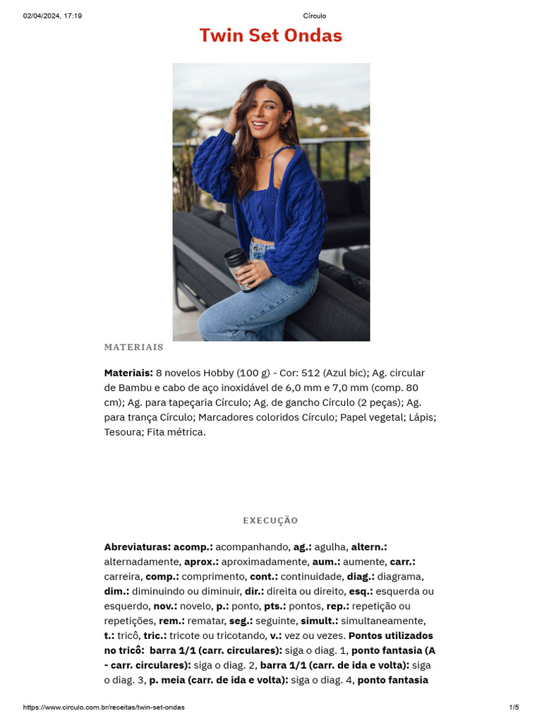 esquerdo, nov.: novelo, p.: ponto, pts.: pontos, rep.: repetição ou