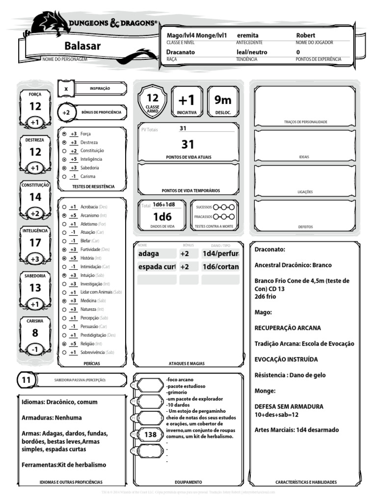 Mago/lvl4 Monge/lvl1 eremita Robert
