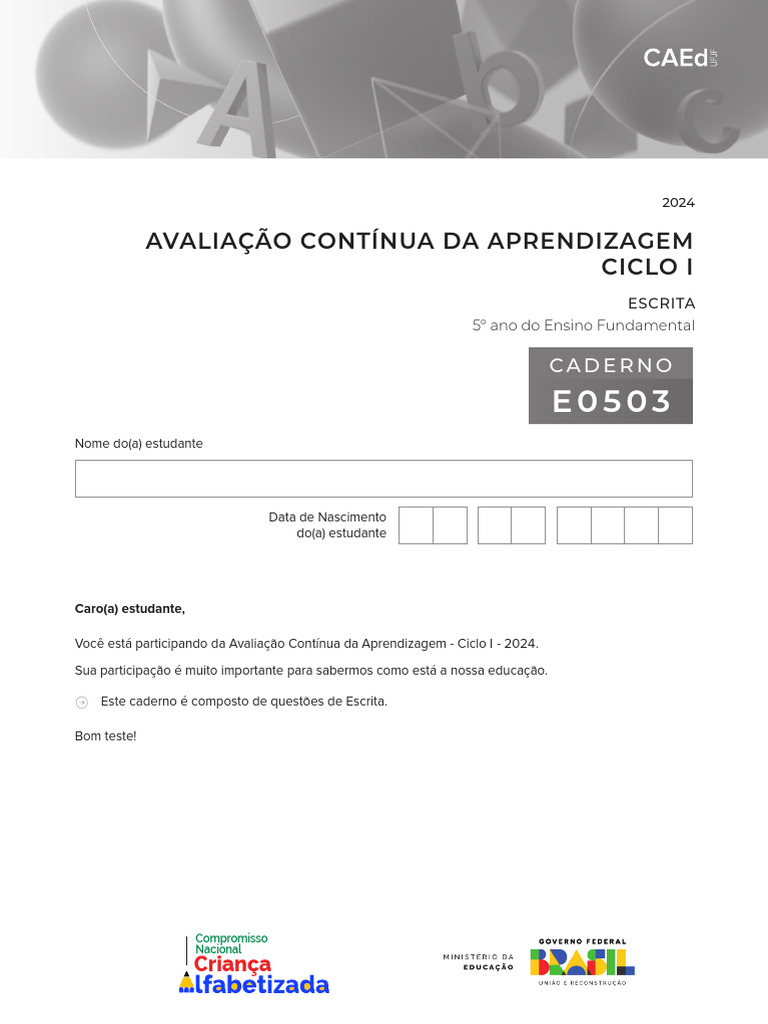 Você está participando da Avaliação Contínua da Aprendizagem - Ciclo I - 2024.