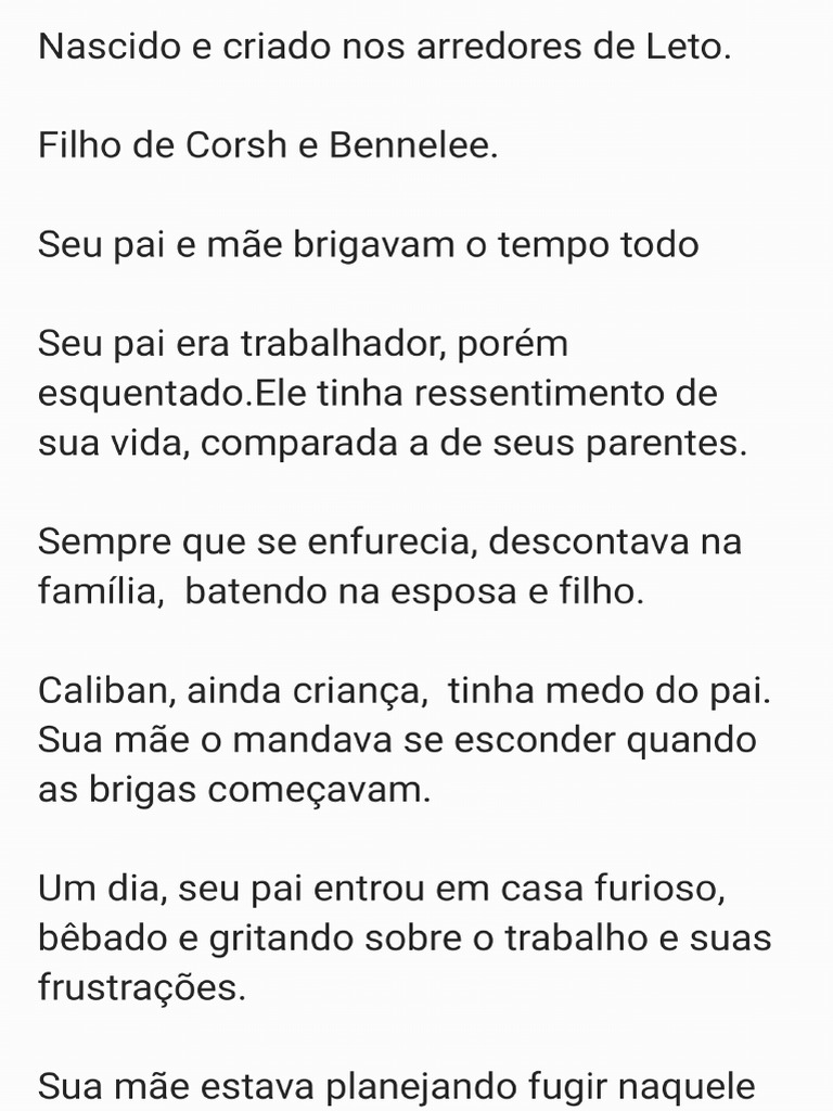 Caliban, ainda crianga, tinha medo do pai.