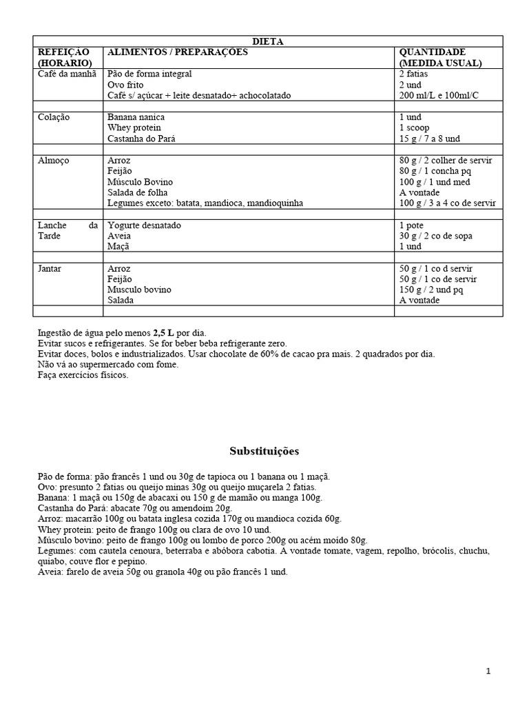 Banana: 1 maçã ou 150g de abacaxi ou 150 g de mamão ou manga 100g.