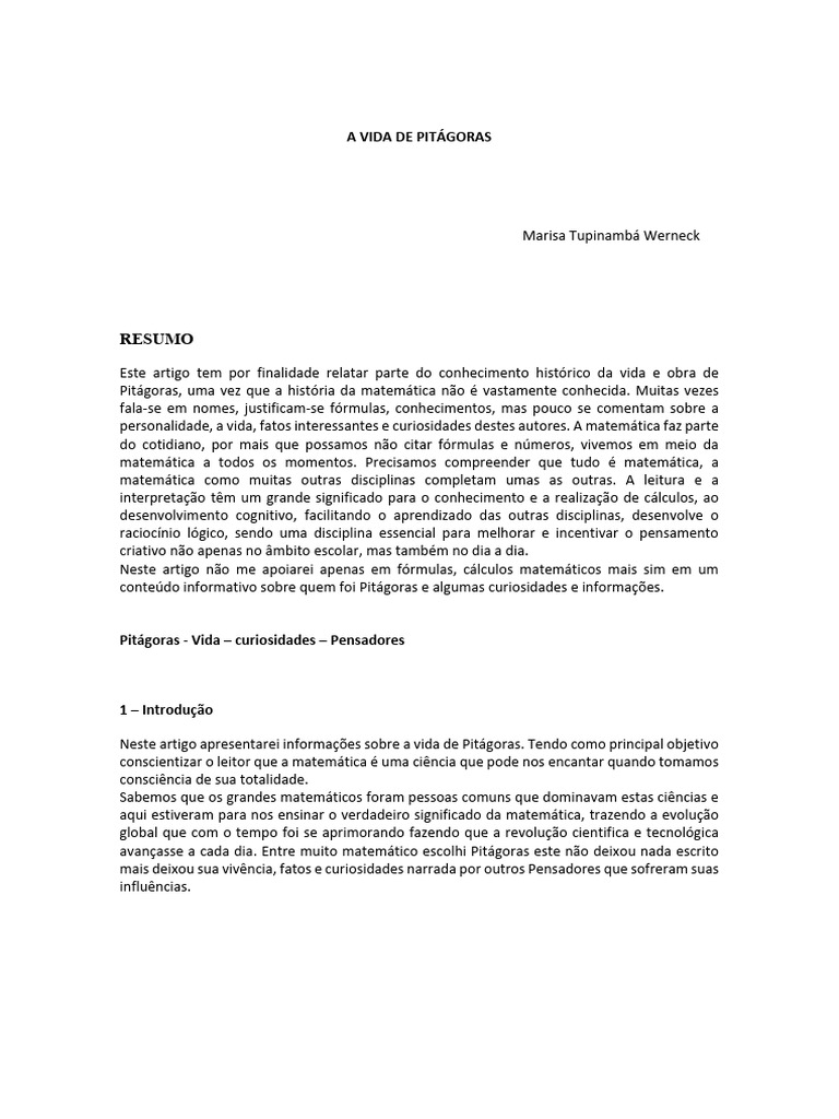 Neste artigo apresentarei informações sobre a vida de Pitágoras. Tendo como principal objetivo
