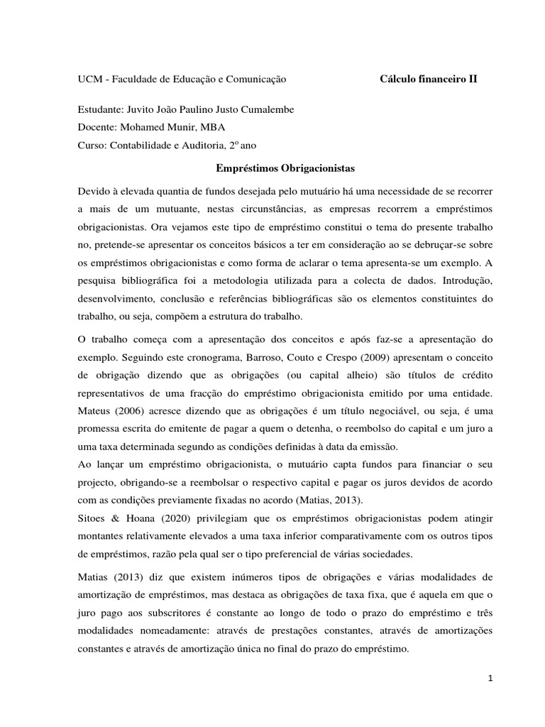 os empréstimos obrigacionistas e como forma de aclarar o tema apresenta-se um exemplo. A
