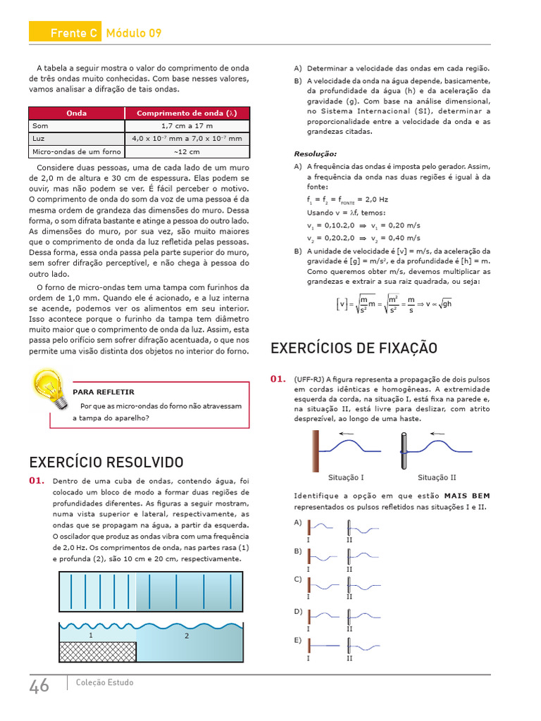 de três ondas muito conhecidas. Com base nesses valores, B) A velocidade da onda na água depende, basicamente,