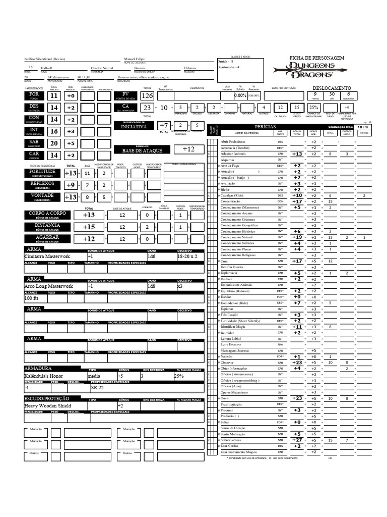 INICIATIVA = 2 + 5 PERÍCIAS 18 / 9