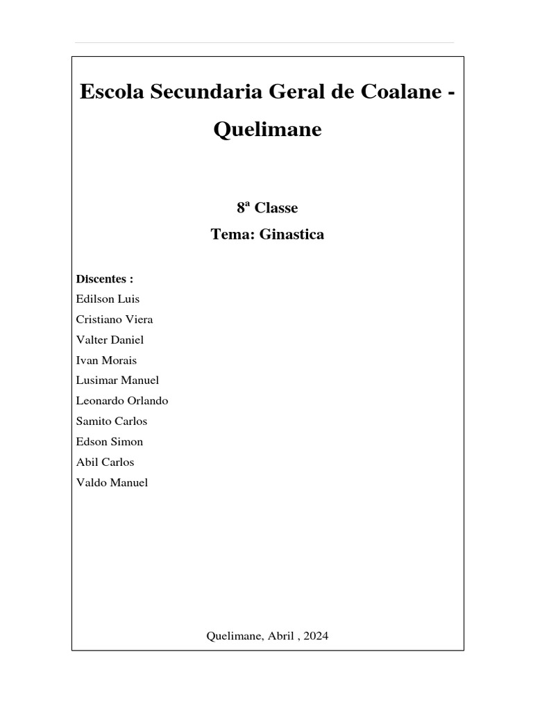 Feito o trabalho de educação física com o tema ginástica o grupo chegou de concluir