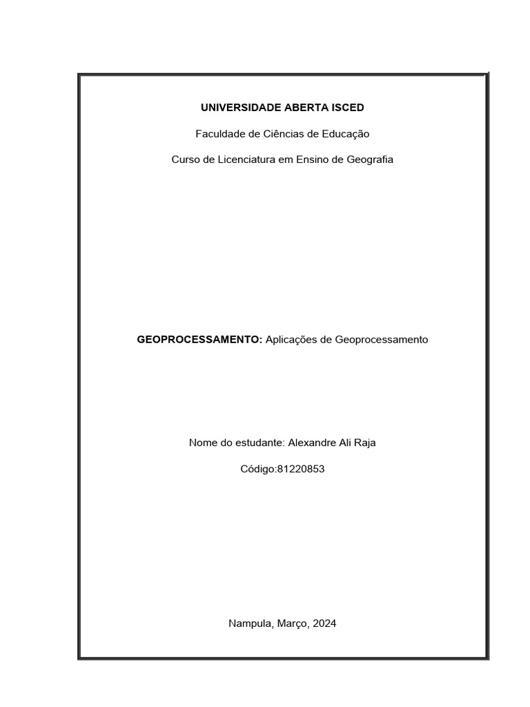 Tem como objectivo geral conhecer as reais aplicações de Geoprocessamento em