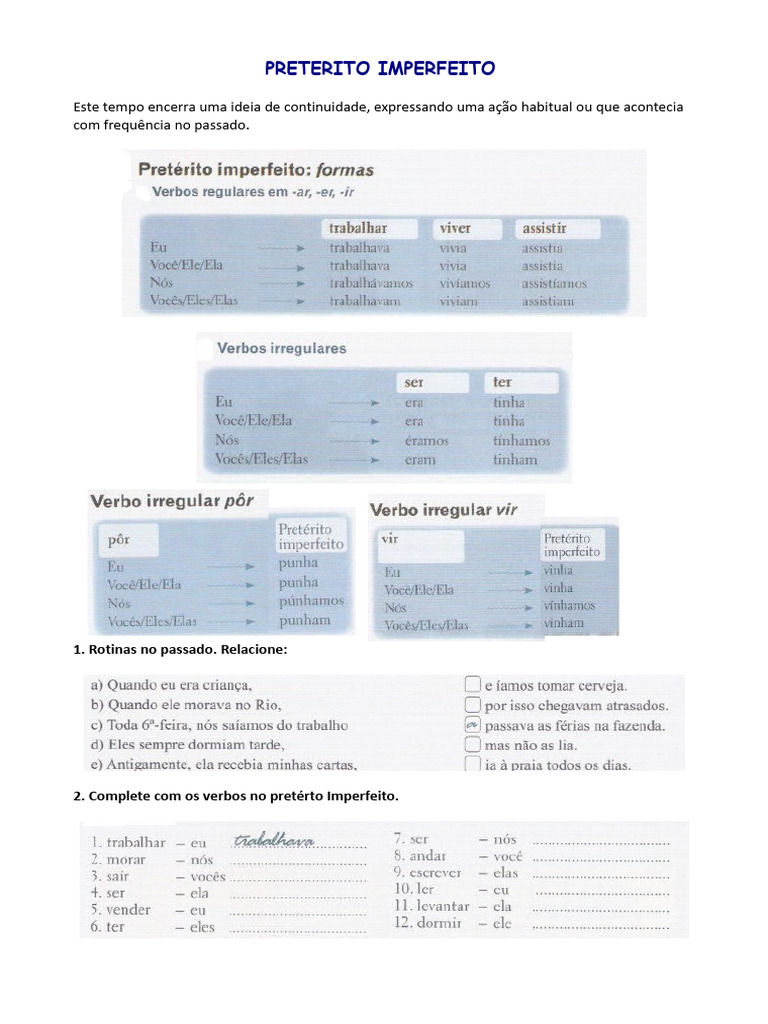 2. Complete com os verbos no pretérto Imperfeito.