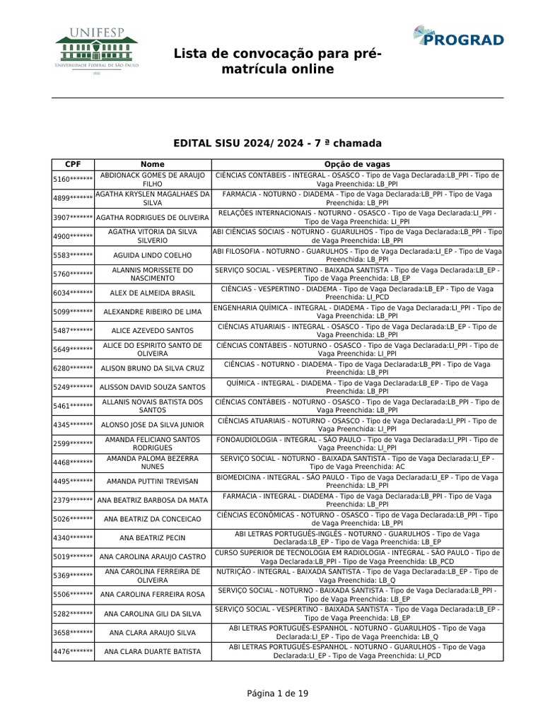 EDITAL SISU 2024/ 2024 - 7 ª chamada