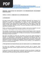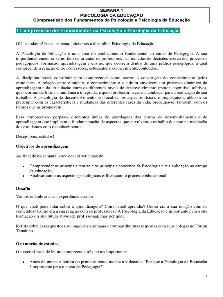 • Antes de iniciar a leitura do primeiro texto, assista à videoaula “Por que a Psicologia da Educação
