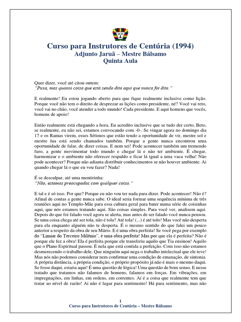 Curso para Instrutores de Centúria – Mestre Bálsamo