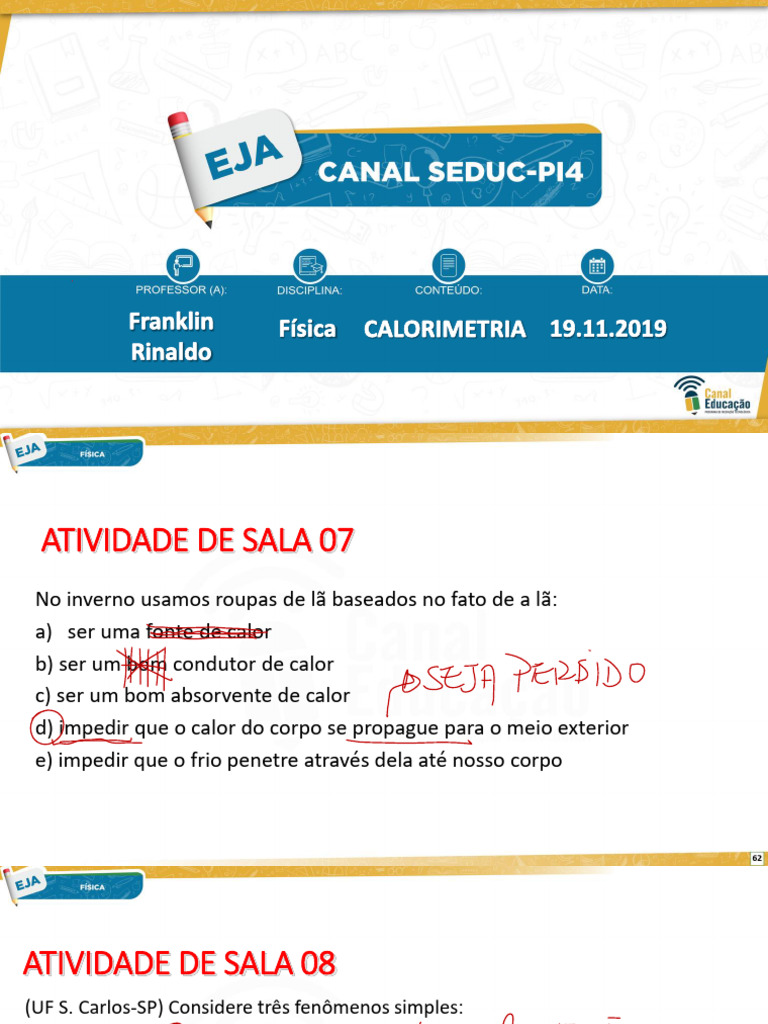 No inverno usamos roupas de lã baseados no fato de a lã: