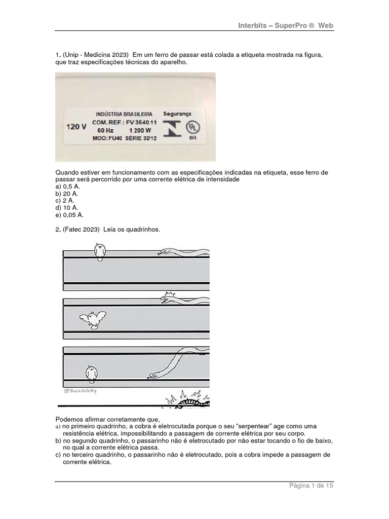 1. (Unip - Medicina 2023) Em um ferro de passar está colada a etiqueta mostrada na figura,