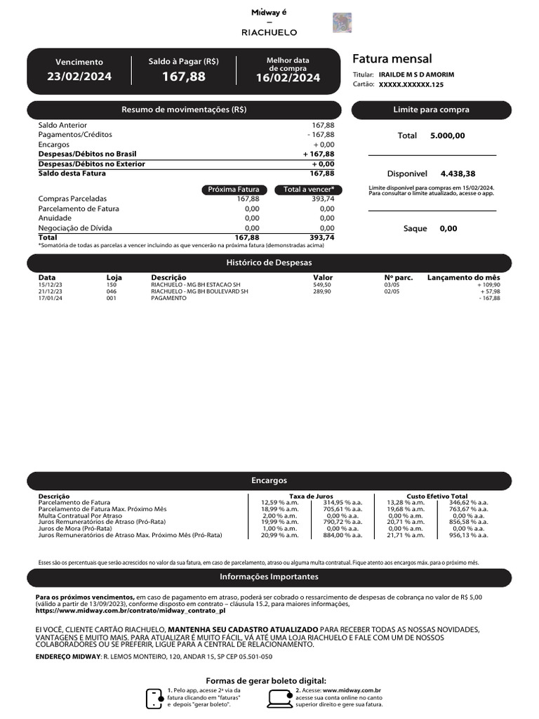 23/02/2024 167,88 16/02/2024 Titular: IRAILDE M S D AMORIM