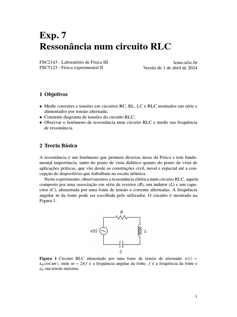 Neste experimento, observaremos a ressonância elétrica num circuito RLC, aquele