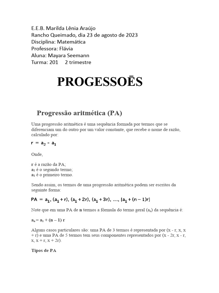 Progressão aritmética (PA)