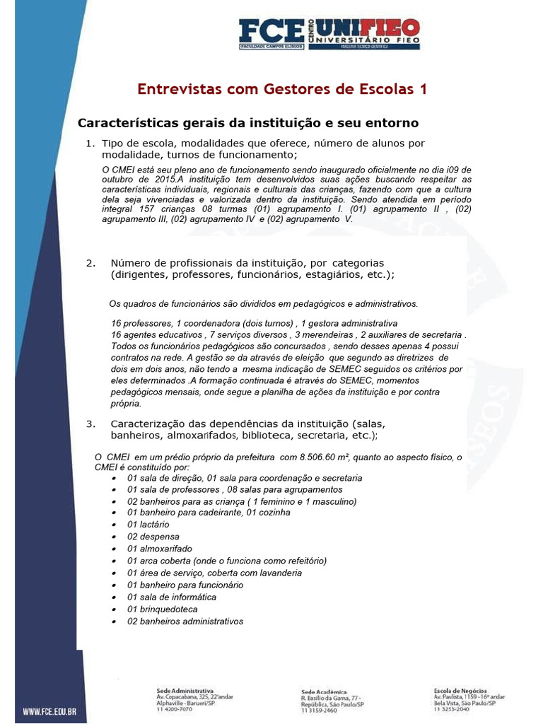 e pedagógicos, limpeza são fornecidas pela SEMEC. Além das reuniões são