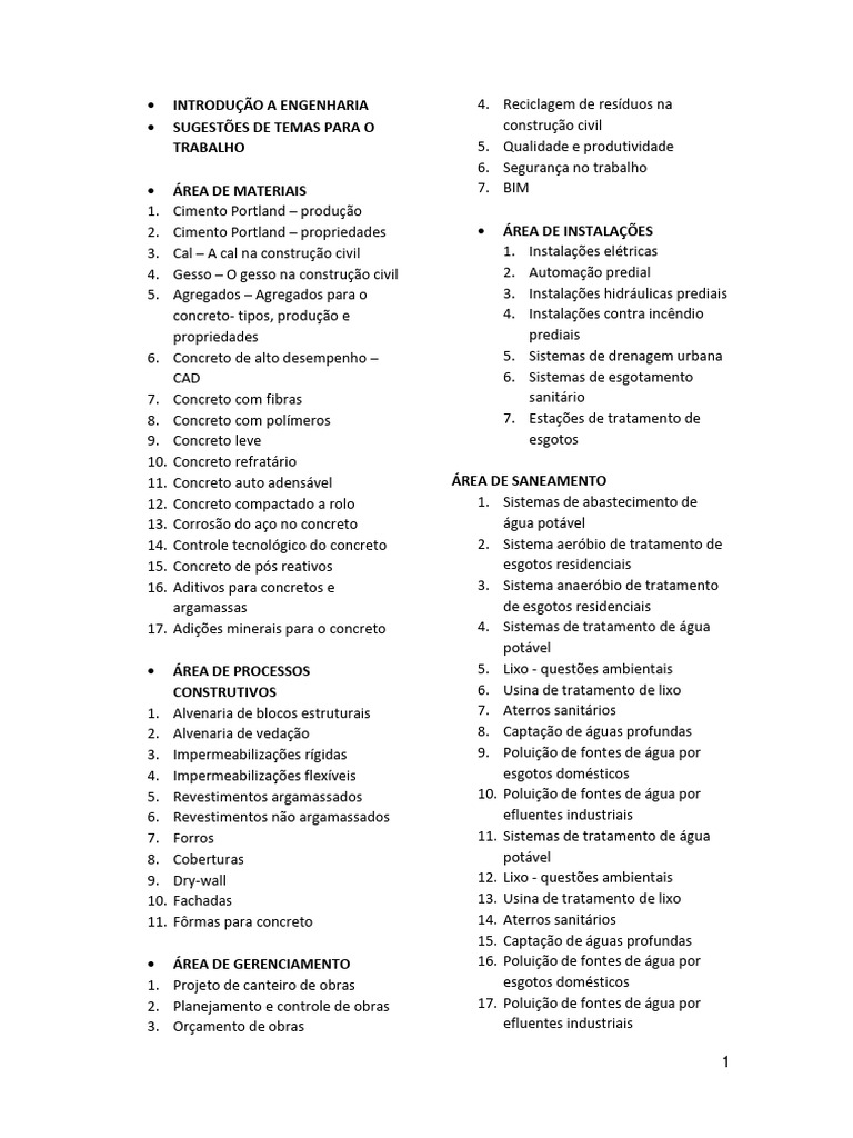 • SUGESTÕES DE TEMAS PARA O construção civil