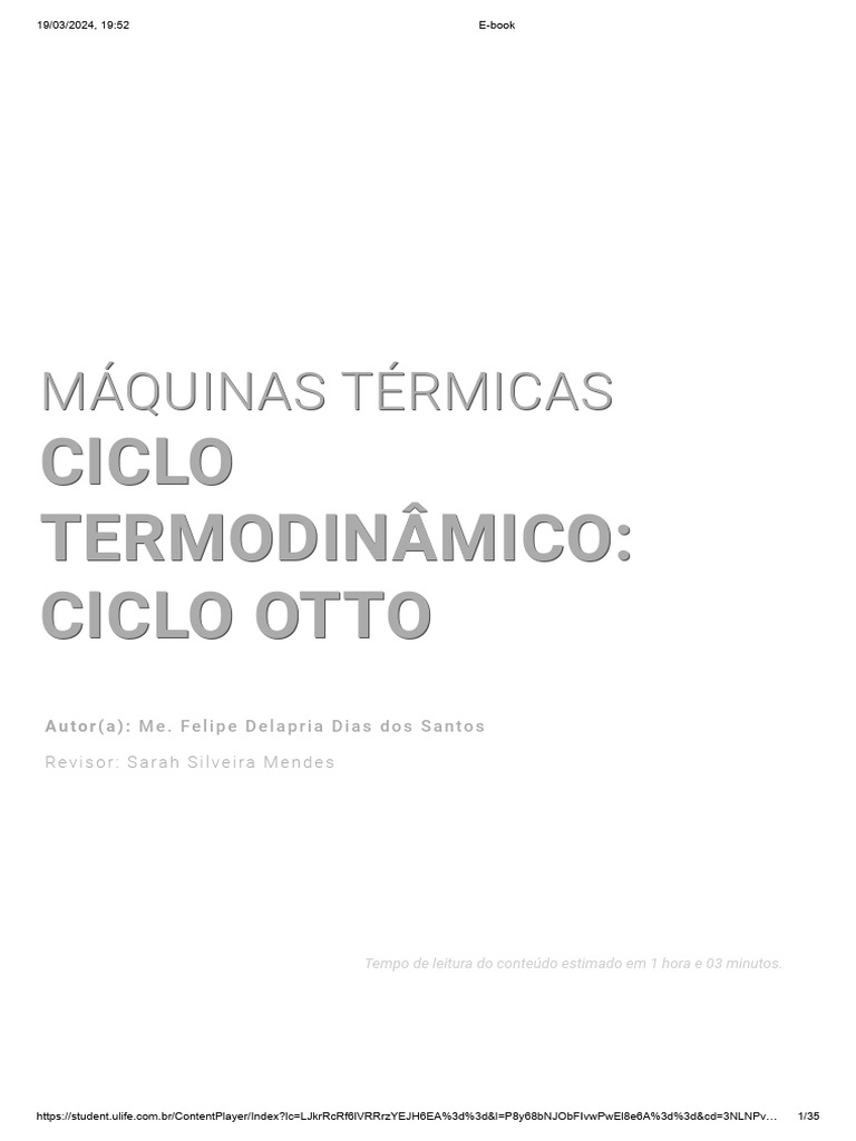 apostila, nós estudamos o ciclo Otto. Nesse momento foi apresentado e discutido