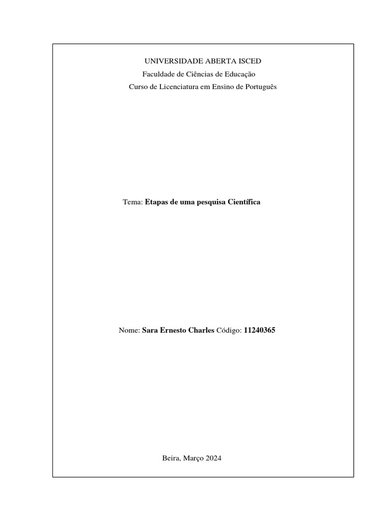 1.1. Objectivo geral: Conhecer as etapas de uma pesquisa científica;