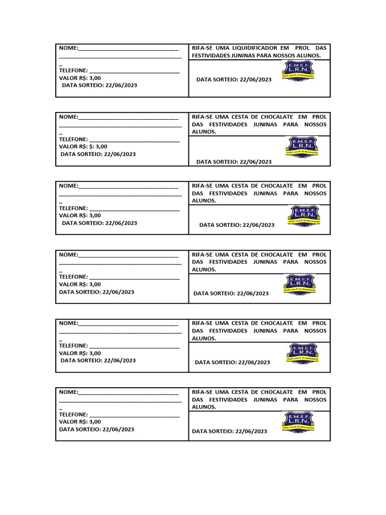NOME:_______________________________ RIFA-SE UMA LIQUIDIFICADOR EM PROL DAS