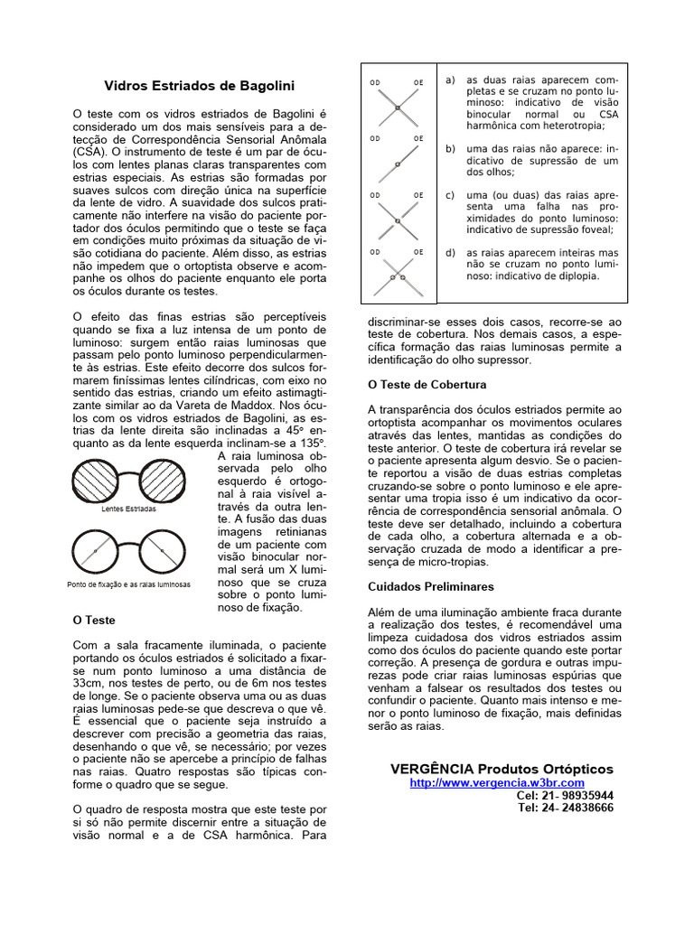 nas raias. Quatro respostas são típicas con- VERGÊNCIA Produtos Ortópticos