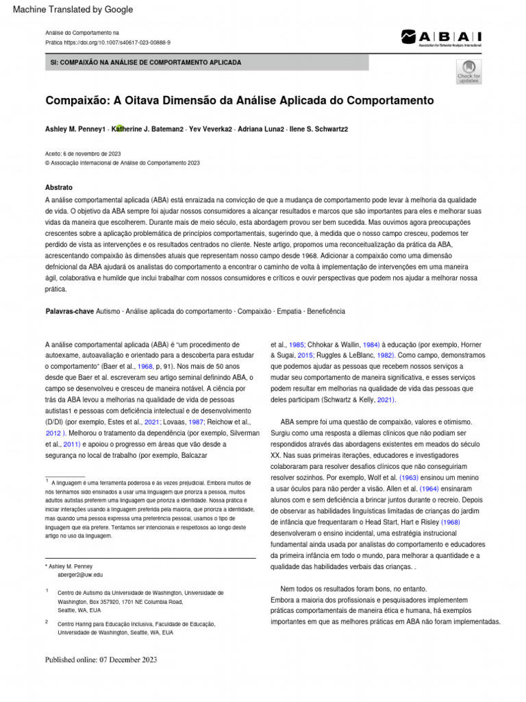 e fornecer exemplos para distinguir a ABA compassiva. da ABA. Esta dimensão baseia-se nas descrições de Baer et al.,